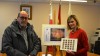 La alcaldesa del municipio, Verónica Samperio, y el presidente de SACCAS, José María Ceballos, presentan el sello, impreso por la Fábrica Nacional de Moneda y Timbre, que Correos pondrá en circulación el próximo 7 de diciembre