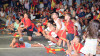 El Ayuntamiento organiza una ‘Zona fans’ en el aparcamiento del polideportivo municipal de la localidad, que reúne a varios centenares de seguidores de ‘La Roja’, que abarrotan las gradas y sillas existentes, así como las inmediaciones del complejo deportivo y que vibran con los goles de Nico y Oyarzábal en Berlín