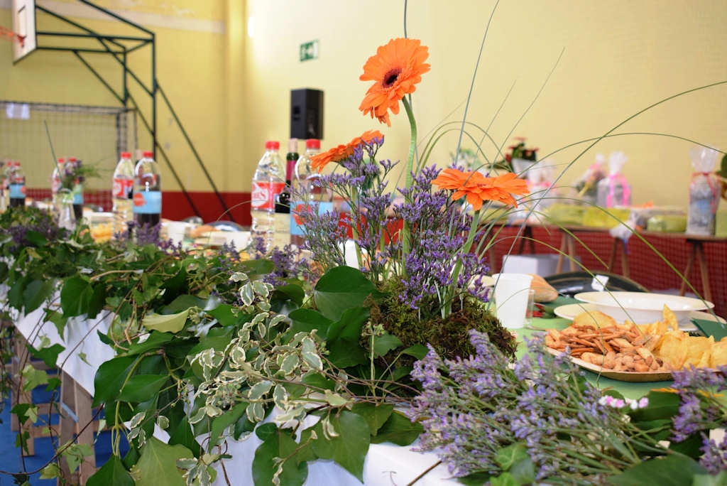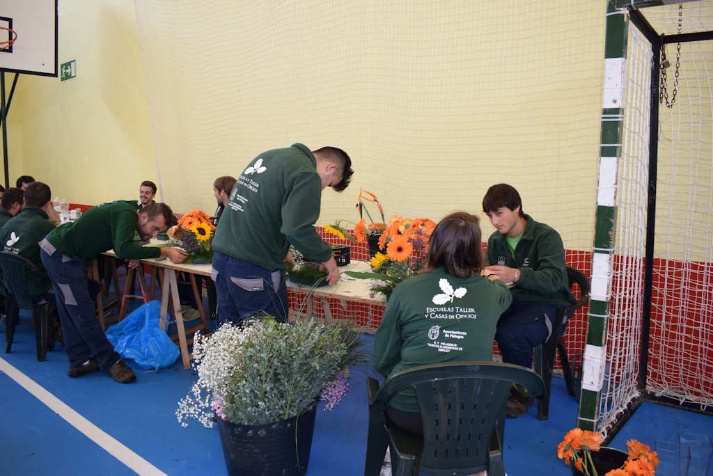 Trabajos de decoración floral polideportivo municipal de Vioño para la Jornada de hermandad de vecinos del municipio mayores de 60 años (25/10/2019)