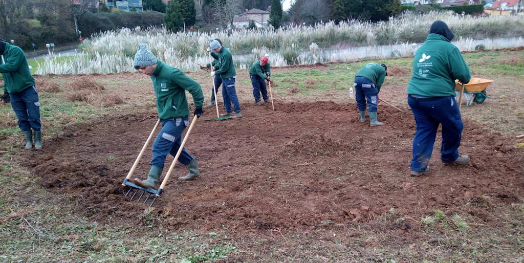 Actuación de los alumnos y alumnas Escuela Taller Piélagos III: Nuevas alternativas de empleo, de la especialidad de “Instalación y mantenimiento de jardines y zonas verdes” en una parcela municipal en Arce (13/01/2020)