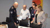 La consejera de Presidencia, Justicia, Seguridad y Simplificación Administración, Isabel Urrutia, acompañada por el alcalde del municipio, Carlos Caramés y el concejal de Gobernación y Seguridad, José Manuel Alegría, ha hecho entrega del mismo al jefe de la Policía Local, Roberto Planchuelo
