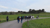Los vecinos de Bezana y Piélagos han llegado al aparcamiento existente frente a la Iglesia de Mortera donde habían sido convocados tanto andando, como en coche o en el autobús que ha facilitado el Ayuntamiento de Piélagos para los usuarios del Centro de Salud Bajo Pas de Renedo.