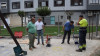 El alcalde del municipio, Carlos Caramés, acompañado por el concejal de Parques, David Diego, y el alcalde pedáneo de la localidad, José Manuel Alegría, visita los trabajos que el Consistorio está ejecutando para comprobar cómo avanzan las obras