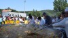 Un año más, en la campa del Santuario de la Virgen de Valencia, se ha servido la tradicional paella. En esta ocasión, 3.000 raciones para las que han sido necesarios 300 kilos de arroz, 200 kilos de pollo, 200 kilos de costilla de cerdo, 30 kilos de calamares, 30 kilos de judías, 30 kilos guisantes, 25 langostinos, 12 kilos de sal o 9 de ajos, entre otras cosas, cocinados al fuego de 800 kilos de leña de haya.