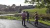 El alcalde del municipio, Carlos Caramés, y el concejal de Obras Públicas y Movilidad y alcalde pedáneo de la localidad, César Blanco, acompañados por vecinos de la zona, comprueban el resultado de los trabajos que el Consistorio ha ejecutado con cargo a una inversión de 80.000 euros