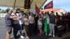 El alcalde del municipio, Carlos Caramés; la concejala de Promoción Agroalimentaria, Valvanuz Díez; el gerente de Sidra Somarroza, Jesús Gómez Solórzano y la alcaldesa pedánea de la localidad, Carolina Calva, acompañados por otros miembros de la Corporación municipal han inaugurado el evento que se celebrará durante toda la jornada en la Plaza Martínez de la Pedraja de la localidad