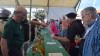 El alcalde del municipio, Carlos Caramés; la concejala de Promoción Agroalimentaria, Valvanuz Díez; el gerente de Sidra Somarroza, Jesús Gómez Solórzano, y la alcaldesa pedánea de la localidad, Carolina Calva, acompañados por otros miembros de la Corporación municipal han inaugurado el evento que se celebrará durante toda la jornada en la Plaza Martínez de la Pedraja de la localidad.