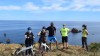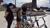 La alcaldesa, Verónica Samperio; la concejala de Turismo, Beatriz Cavada, y el gerente de Octopus Movilidad, Santiago Mijares, acompañados por dos representantes de la Asociación Cantabria ConBici, participan en uno de los itinerarios que, hasta el próximo 15 de septiembre, se ofrecen a diario, con salida y llegada en la Oficina municipal de turismo de Piélagos, en Liencres