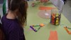 Repartidos en tres grupos, en función de la edad -los más pequeños acompañados por su padre o madre- realizaron todo tipo de elementos de decoración navideña, en todos los casos, con materiales de uso cotidiano como palos de madera, cartulinas, pegamento y pinturas.
