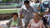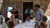 Acompañados por la representante de la empresa concesionaria, Mari José Garay, y de la directora del centro, Tamara Ruiz Pulido, han conversado con los usuarios que, después de iniciar la jornada como cada día realizando una actividad de carácter cognitivo, disfrutaban en el patio de otra más lúdica, antes de la hora de la comida.